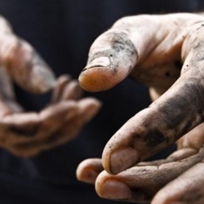 Now I hold his dirty hands with joy, we came back to each other after many, many years apart.